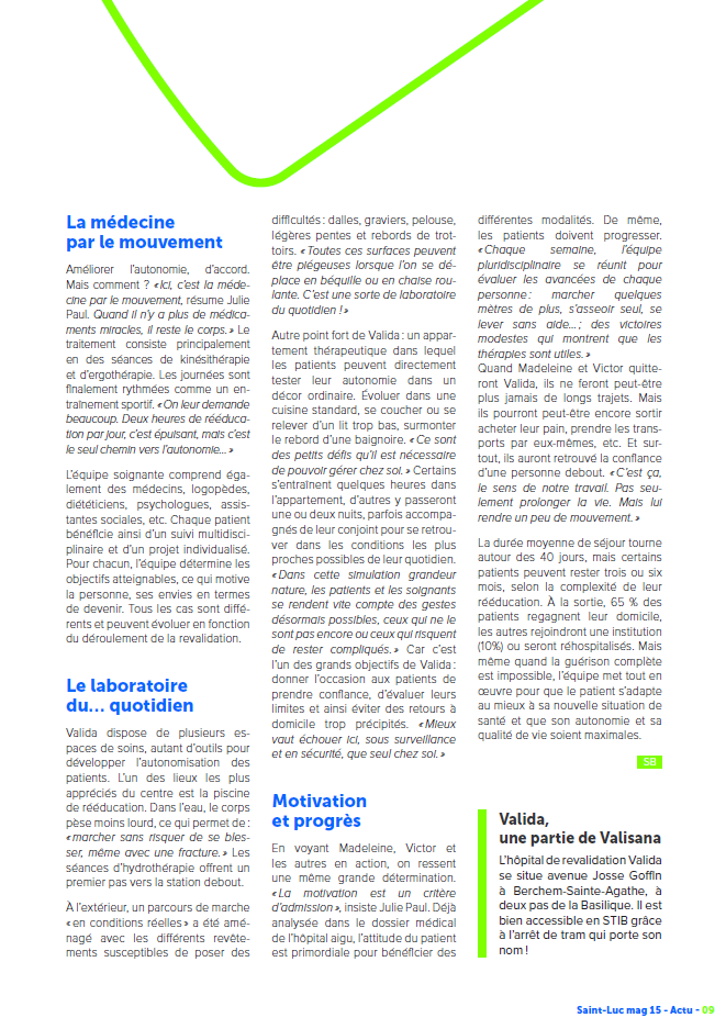 Un bel article est paru dans le Saint-Luc mag pour parler de Valida !